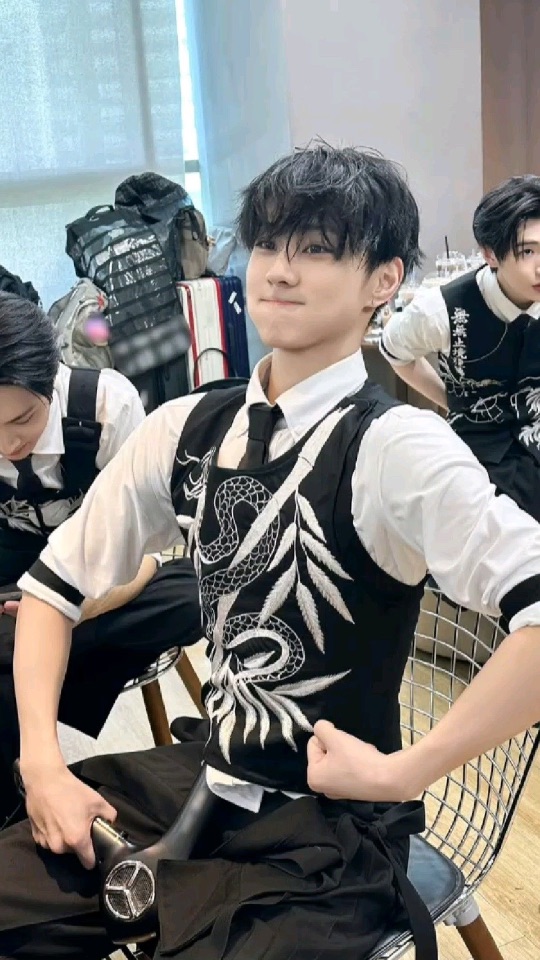 용 무늬 자수 베스트라니 코디님 절 받으세요! 🐉🔥 동양적인 무드에 넥타이 조합이 힙하면서도 단정해! 믹스매치 소화력 진짜 갓벽하다! 💯👔