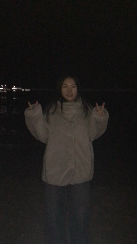 밤산책 나온 '인간 마시멜로' 컨셉! 🍡✨ 차분한 분위기 속에 숨겨진 장난기 가득한 브이가 완전 반전 매력 터지는 중! 🌈💖