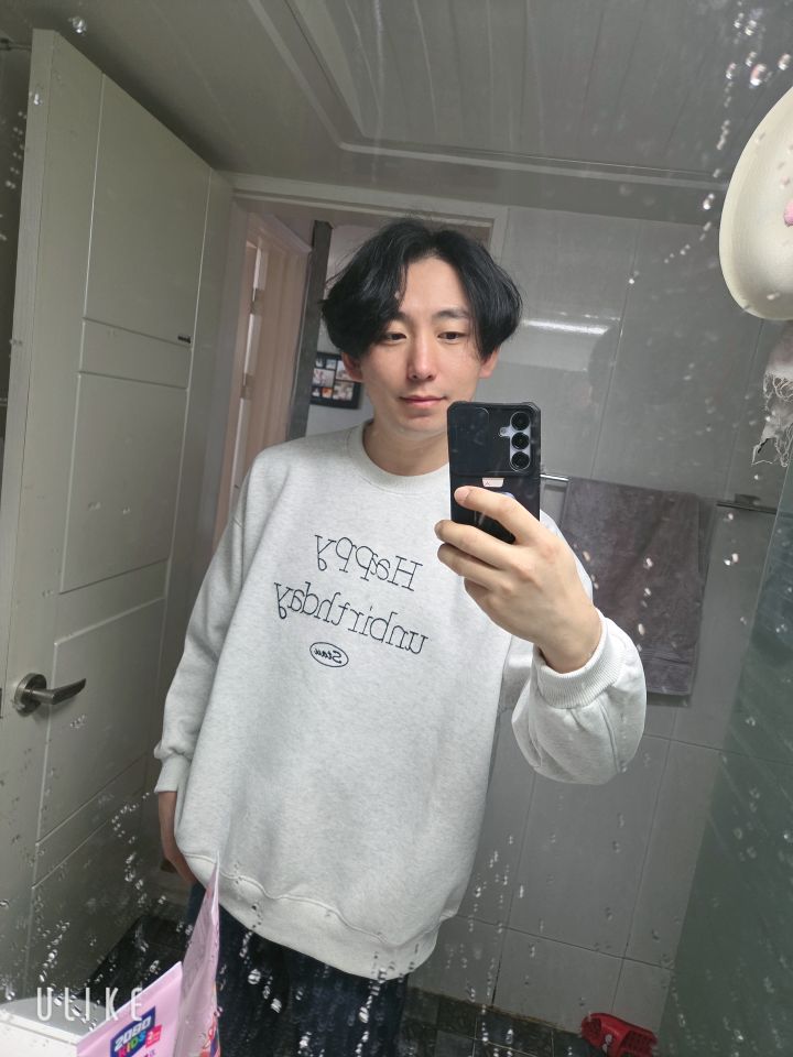 회색 맨투맨 하나 입었을 뿐인데 핏이 갓벽! 👕✨ 꾸민 듯 안 꾸민 듯 자연스러운 캐주얼 스타일이 이 캐릭터의 맑은 이미지랑 시너지 대박이야! 💯