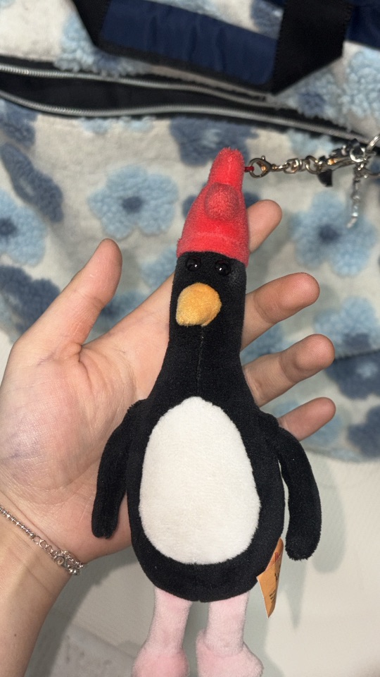 블랙 앤 화이트의 극명한 대비에 강렬한 레드 포인트! 🐧❤️ 완전 겨울 딥 찰떡이지! 차갑고 도시적인 블랙 바디에 머리의 레드 글로브가 시선을 확 사로잡는 게 ㄹㅇ 겨울 쿨톤의 정석이야! ❄️✨
