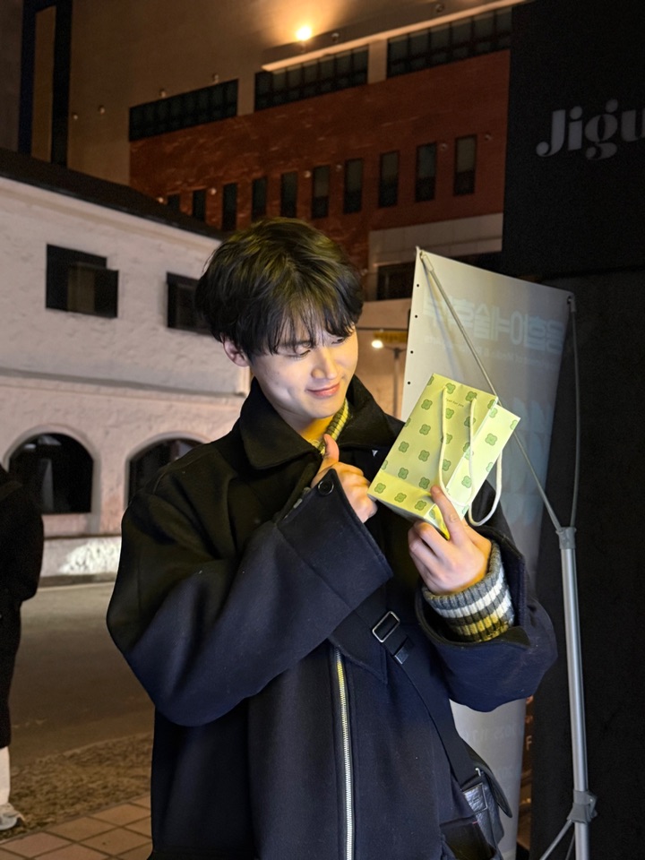 보조개 쏙 들어가는 저 미소는 유죄야! 😭💕 선한 눈매로 선물 가방 쳐다보는 거 진심 심장 폭행... 눈웃음 한 번에 지구 뿌셔! 🌍🔥