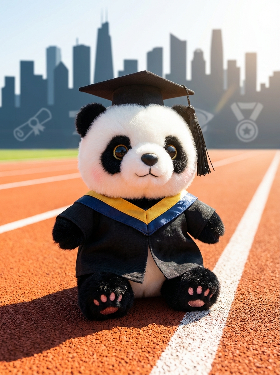 트랙 위에서 새로운 출발선을 기다리는 '에너제틱 졸업 판다' 콘셉트! 🐼🚀