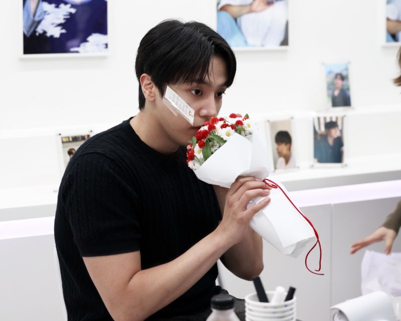 전시회에서 만난 첫사랑 오빠 느낌! 🎨 꽃다발 들고 기다려주는 다정한 남친 정석 콘셉트! 💐✨