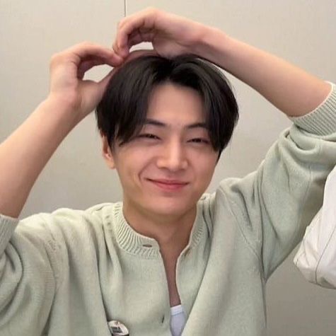 머리 위로 하트 만들면서 씩 웃는 거 유죄... 😭💖 눈웃음이랑 살짝 보이는 보조개 때문에 심장 멎을 뻔했어! 수줍은 듯하면서도 다정한 눈빛이 킬포!