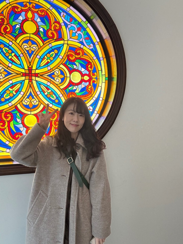 "성당의 스테인드글라스를 뚫고 들어오는 따스한 오후의 햇살 같은 분위기! ⛪☀️ 보고만 있어도 마음이 평화로워지는 힐링 그 자체야! ✨🕊️"
